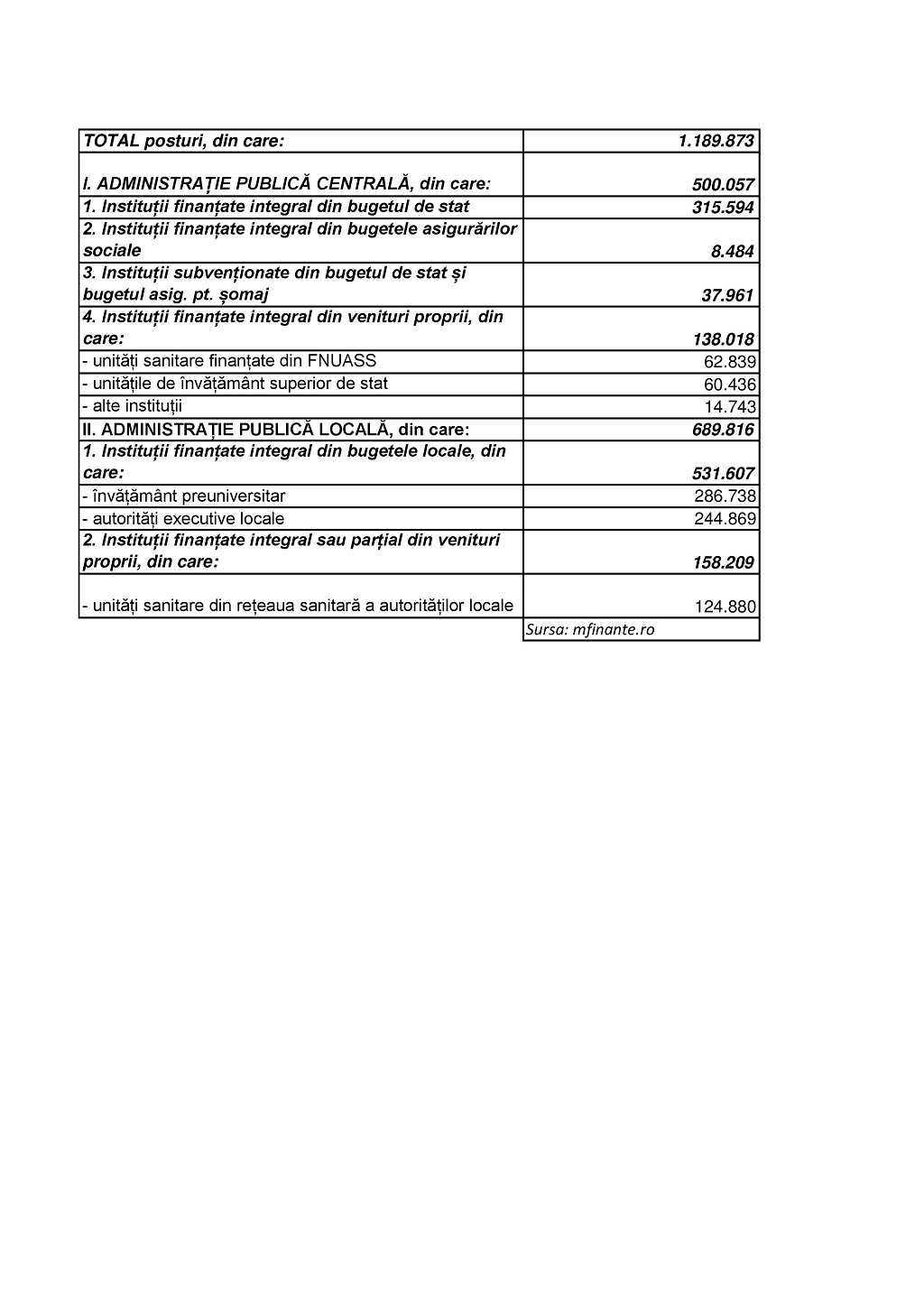 România avea în februarie anul acesta 1.189.873 de bugetari, pentru care a cheltuit anul trecut 57 miliarde de lei (12,7 mld. euro), adică un sfert din toată cheltuiala bugetului general consolidat de circa 230 mld. lei.