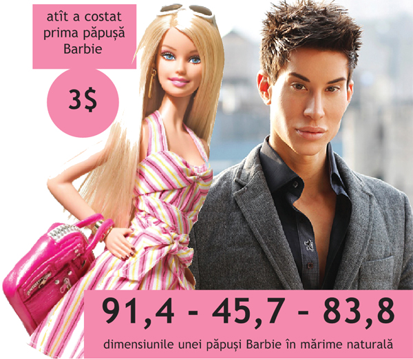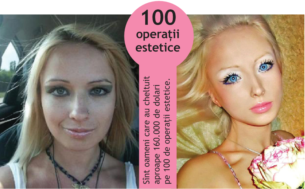 Prin anul 2010, actrița Heidi Montag a apărut pe coperta revistei „People” complet schimbată și nu numai din cauza retușărilor în Photoshop, ci și a celor din bisturiu. Mai exact, zece operații estetice într-o singură zi pentru ca fața ei să pară modelată după cea a lui Barbie, căci aici s-ar opri asemănările cu păpușa. Există, însă, și fete care nu se mulțumesc doar cu un chip de plastic, ci vor să devină o Barbie în mărime naturală, chiar dacă asta înseamnă să își deformeze corpul pentru a măsura aproape 92 – 46 – 84, așa-zisa perfecțiune. Ucraineanca Valeria Lukyanova este una dintre acestea și, după cum spune ea, nu a vizitat sala de operație decît pentru a ieși de acolo cu două mărimi în plus la sutien. Talia de nici 50 de centimetri, buzele pline și nasul subțire ar fi doar moștenire genetică.