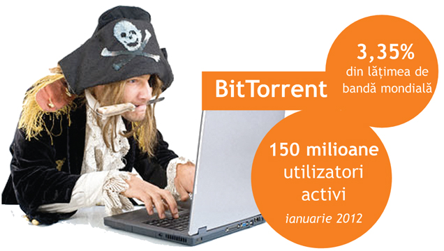 Sistemul de file sharing BitTorrent ocupă 3,35% din lățimea de bandă mondială.