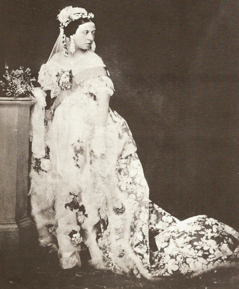 În cartea „Istoria rochiei albe”, Kelsey McIntyre spune că rochia albă de mireasă a fost introdusă în perioada contemporană de Regina Victoria I aRegatului Unit al Marii Britanii și Irlandei, în anul 1840, la căsătoria cu Prințul Albert de Saxa Coburg-Gotha. Pînă atunci albul a fost considerat doar o culoare a bogăției deoarece era foarte greu de obținut un material alb impecabil. Rochia, din satin și fragmente de dantelă de Honiton împodobită cu flori de portocal, a devenit cunoscută datorită unei ilustrații care a circulat în aproape toată lumea. Astfel, vrînd să o copieze pe regina Victoria, miresele de pe atunci au făcut din rochia albă o tradiție care s-a păstrat pînă în zilele noastre. Rochia reginei a fost fabricată manual în Spitalfields, un cartier al Londrei, și a avut o influență atît de mare încît în secolul al XX-lea au apărut și primele magazine care comercializau rochii albe pentru mirese.