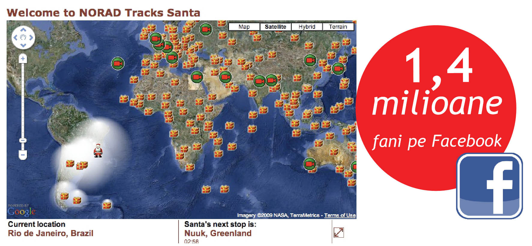 Comandamentul de apărare aerospațială și cei de la Google urmăresc, an de an, sania plină cu cadouri.