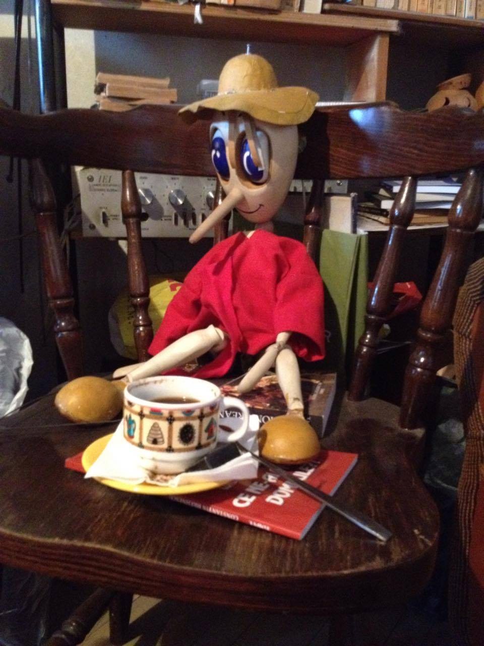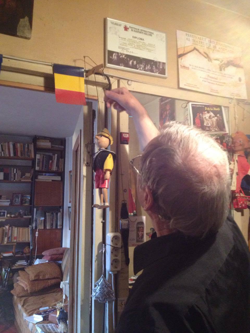 Pinocchio este personajul pe care păpușarul l-a jucat cel mai mult, de-a lungul carierei și acum păpușa îi decorează apartamentul.