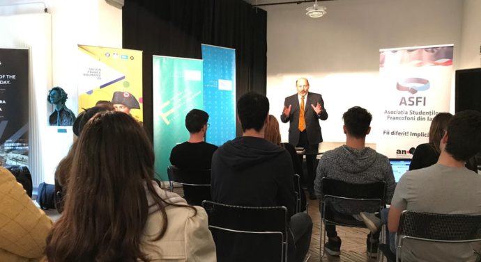 „Vă spun că aș vrea să mă pot clona. Aș putea fi în mai multe locuri deodată și, astfel, nu m-ar mai aștepta lumea atît de mult”, spune bărbatul solid, în costum negru, schițînd un zîmbet în timp ce se așază la masa din fața scenei nu prea înalte din Sala „Benjamin Fondane” a Institutului Francez din Iași, joi, 16 mai 2019. Cu puțin timp înainte de ora 14.00, momentul începerii „Cursului de antropologie culturală” susținut de prof. univ. dr. Nicu Gavriluță, organizat în timpul Festivalului „Zilele Studentului Francofon”, în încăperea mică apar cîțiva studenți care aranjază scaunele și își caută fiecare locul pe care să se așeze.