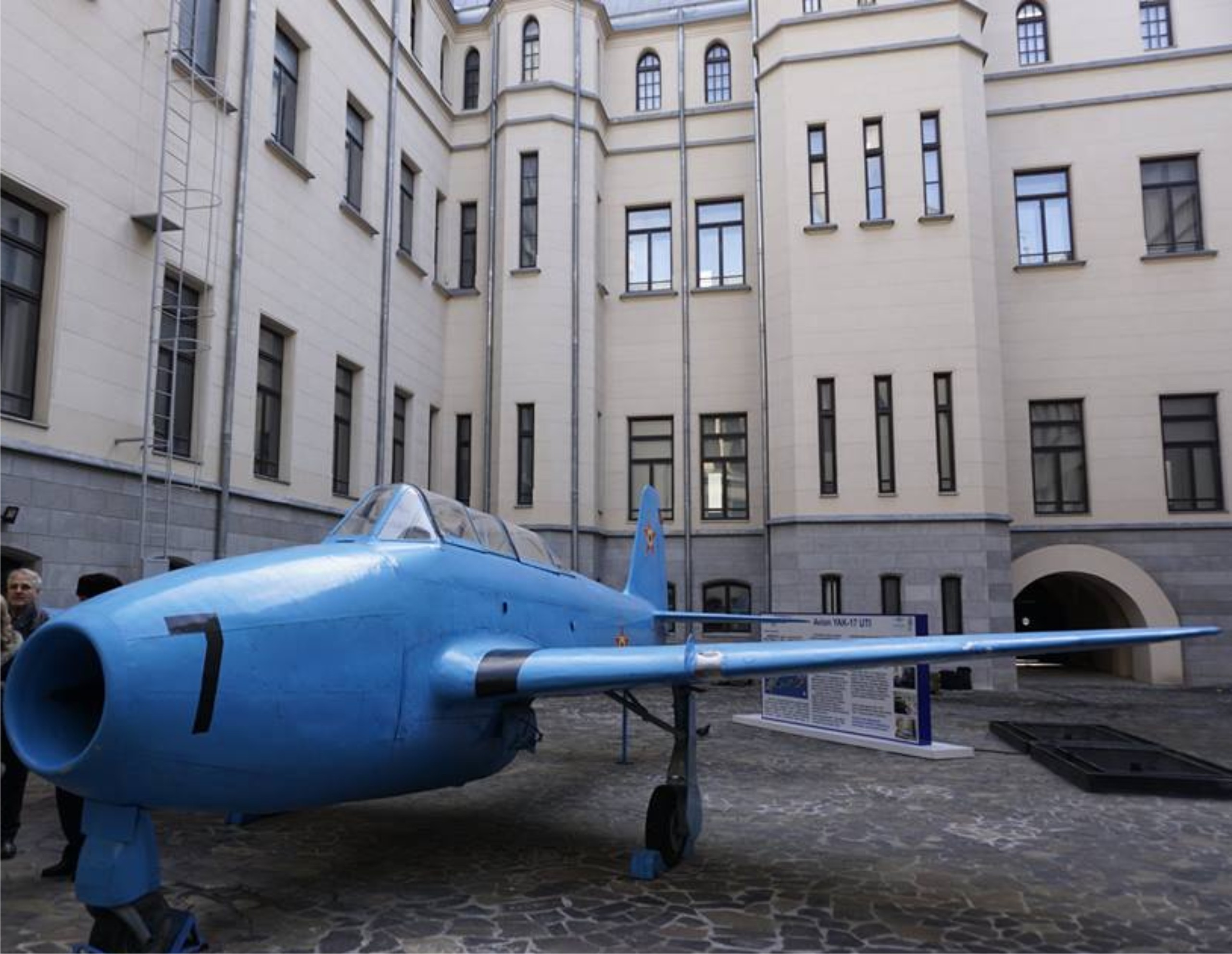 Acoperită acum de un strat gros de nea, aeronava YAK 17 UTI e o mărturie a evoluției aeronautice, fiind singura de acest tip care a supraviețuit în România. Arătînd ca un bibelou menit să amintească de cum erau lucrurile odinioară, aparatul de zbor cu numărul de bord 7 deținut de Complexul Muzeal „Moldova” din Iaşi – Muzeul Științei și Tehnicii „Ștefan Procopiu” a fost restaurat prin priceperea și măiestria inginerilor și tehnicienilor de la Aerostar Bacău. Cu o lungime de aproximativ nouă metri și o înălțime de aproape trei metri, aeronava, care acum are culoarea albăstruie a unui cer senin de vară, a încremenit impunătoare în curtea interioară a Palatului Culturii din Iași.