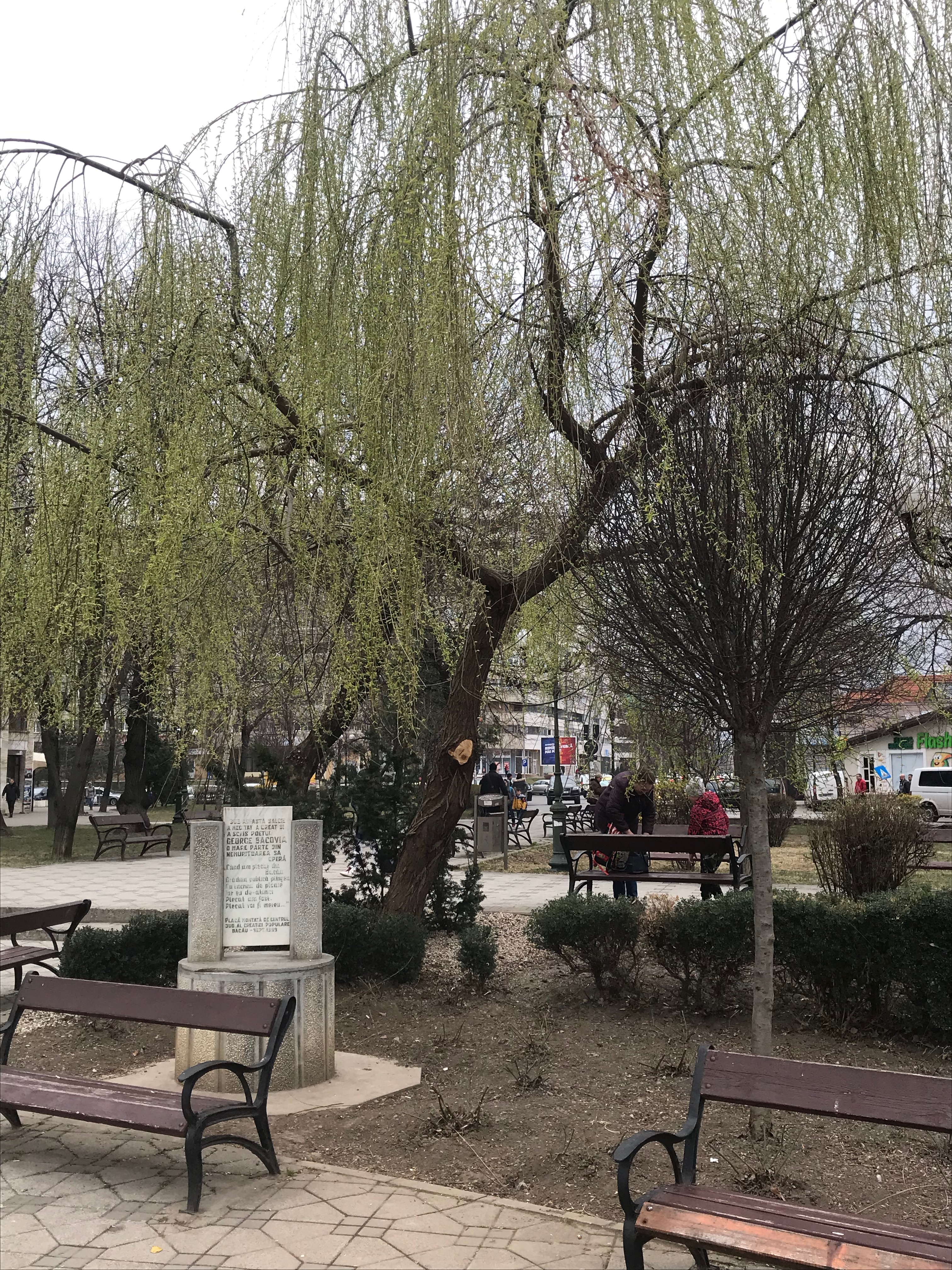 Pe atunci se numea „Grădina Mare” și se găsea vizavi de casa lui Bacovia. Plină de trandafirii pe care se spune că îi admirase și Alexandru Ioan Cuza în drum spre București, cu arbori din mai multe soiuri, parcul era frecventat atît de cei care voiau să se bucure de mireasma florilor, cît și de cei care, precum Bacovia, doreau să găsească un loc cu umbră și liniște. Un astfel de loc a găsit poetul sub o salcie, pe o bancă singuratică. Aici venea cînd voia să „evadeze” de acasă, însă nu voia să meargă în locul său obișnuit de plimbare, pe malul Bistriței. Își lua caietul, tocul și se așeza pe bancă. Uneori scria, alteori recitea poeziile din caiet și dacă i se părea că nu sînt suficient de bune, rupea foaia cu poemul, o mototolea și o arunca sub bancă. Agatha, soția sa, îl urmărea de la fereastra casei, iar atunci cînd Bacovia se întorcea, într-un final, hămesit, la masă, ea fugea și strîngea însemnările azvîrlite. Atunci cînd îl cuprindea depresia acasă, nemaiavînd o bancă sub care să le arunce, voia să le ardă. Iar Agatha făcea tot posibilul să îl îndepărteze, măcar pentru cîteva clipe, de birou, pentru a i le fura. „Cînd se linișteau apele, Agatha îi înapoia însemnările. Așa i-a salvat multe poezii pe care poetul le-a îmbunătățit și le-a publicat mai tîrziu”, încheie Tincuța Bernevic istorisirea.