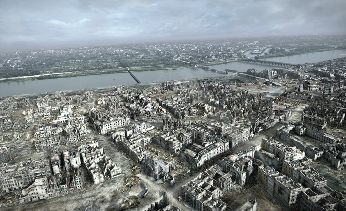 Varșovia în octombrie 1944, la sfîrșitul răzvrătirii poloneze (văzută în filmul „Orașul Ruinelor”).