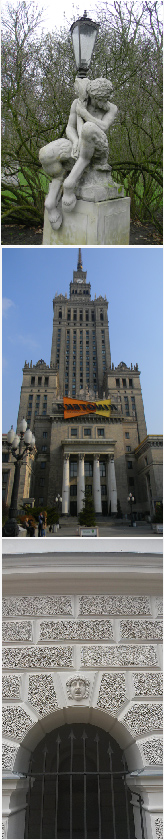 Studenți intră și ies din Po­li­technika. Unul se-oprește să ne-a­ra­te ceva pe hartă, după care își vede de drum. În fața clădirii principale vreo trei împart o sticlă de votcă și niște biscuiți, cred; se uită puțin urît la mine, să nu cumva să le fac poză, și-și văd în continuare de treabă. În parcul Lazienki păuni se plimbă pe alei, apropiindu-se nesfios de oameni, și veverițe ți se strecoară printre picioare. Statui ale zeului grec Pan se agață de fe­linare sau cară în spinare cadrane solare. Un amfiteatru în semicerc e împrejmuit și păzit de statuile fi­lo­so­filor greci și monumentul lui Fre­deric Chopin așteaptă zilele în­so­rite și concertele în aer liber.