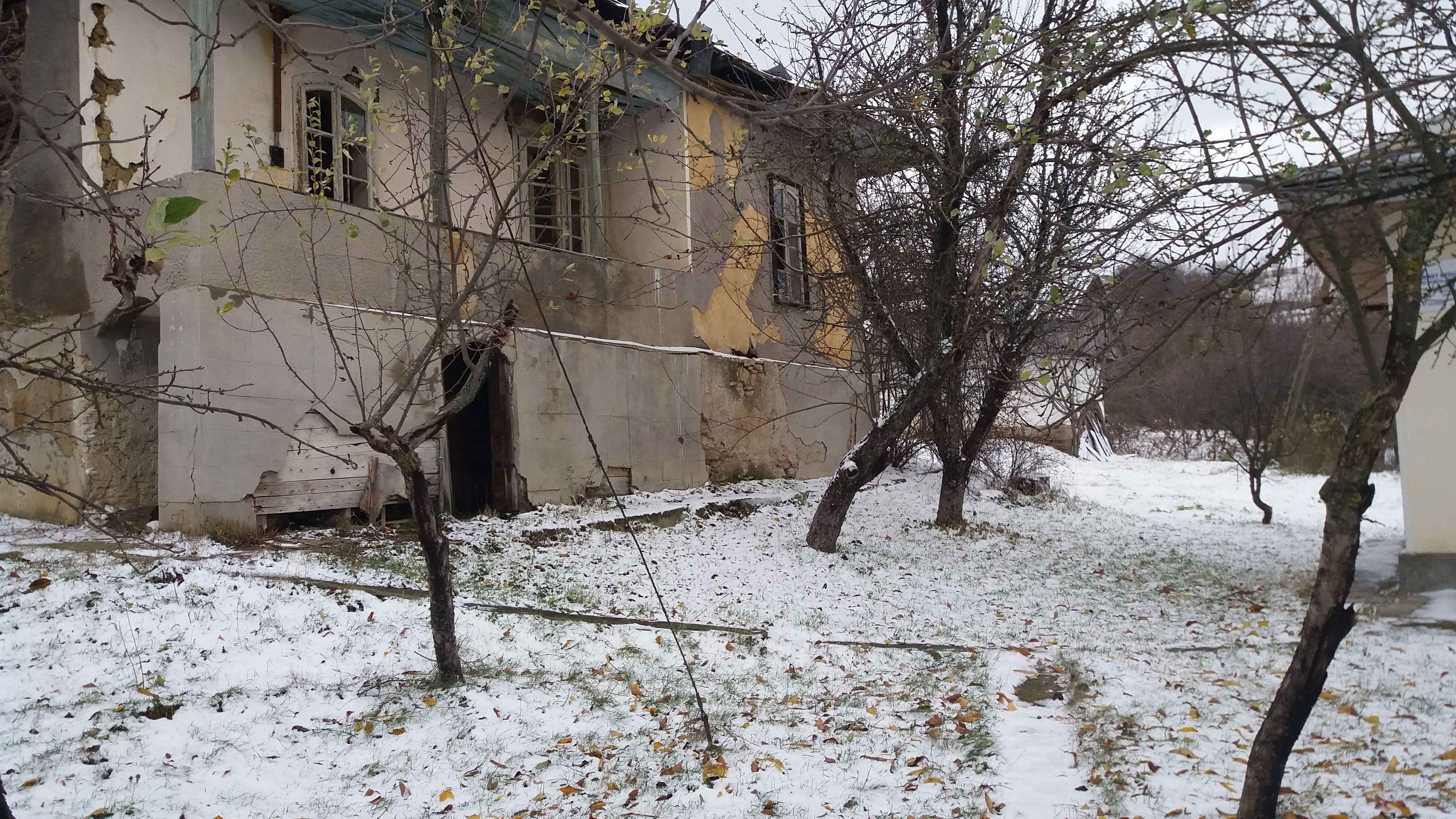 Ca să ajungi la cabinet, trebuie să pornești de pe deal, unde este biserica satului, care are în curte și un mic cimitir. În drum către cabinet, singurul sunet pe care îl auzi pe lîngă vîntul care îți străpunge întreg trupul este foșnetul coroanelor și al panglicilor care se izbesc din cînd în cînd de crucile de lemn. Fiind abandonat într-o vale, cabinetul pare să fie adăpostit de zăpezi sau de alte pericole, însă în același timp îl face și izolat de restul satului sau de restul comunei. De cîteva zile s-a așternut un fel de ninsoare care a rămas neatinsă în preajma dispensarului, iar pe alocuri se văd urme ale cîinilor care au trecut prin zonă. Ușa de la intrare este închisă, iar pe geamurile peste care au trecut deja mai multe ploi și zăpezi, încă sînt afișate scheme de vaccinare și alte sfaturi din partea medicului. Care însă nu mai ajung la nimeni.
