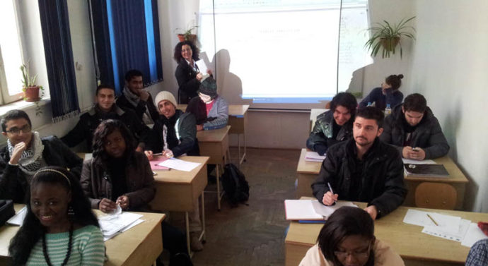 Pe coridorul lung cu pereți înalți și albi din Corpul G al Universității „Alexandru Ioan Cuza” răsună ecoul unei voci care explică cînd în română, cînd în engleză, cum stă treaba cu articolele genitivale. În G 102, sala din capătul holului, studenții străini încearcă sădeslușeasă fiecare cuvînt din definirea celulei, de mai bine de trei ore. Fiind semestrul al doilea, la catedra de însușire a limbii române, a început deja cursul despre limbajul de specialitate în domeniul medical, pe care viitorii doctori trebuie să-l stăpînească.