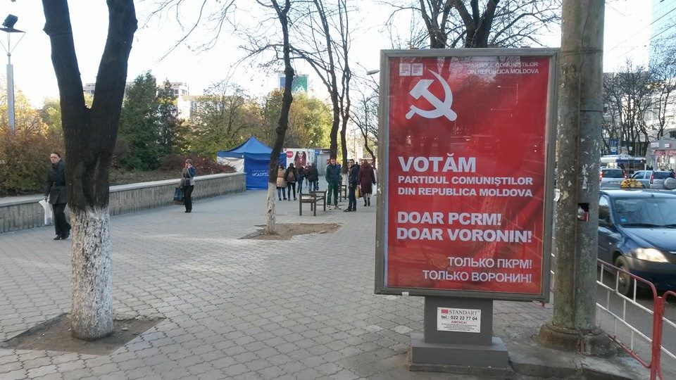 Pe una dintre clădirile înalte de lîngă magazinul Unic două afișe electorale parcă poartă o conversație ca doi vecini de bloc: primul spune „Înainte spre un viitor european” iar al doilea îl contrazice, „Mai bine să trăim în bunăstare alături de Rusia decît să fim săracii și datornicii Europei”. Unul e al Partidului Liberal Democrat, celălalt al Partidului Socialiștilor, prietenii lui Putin. „Ei zic că nu sînt aceiași cu comuniștii, da’ astea-s povești pentru bunei, sînt tot ăia”, îmi explică un tînăr.