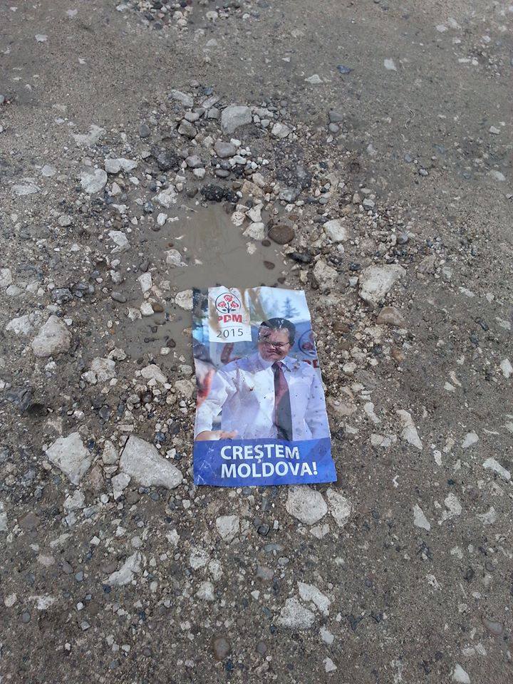 Pe Ștefan cel Mare, bulevardul principal al Chișinăului, reprezentanți ai tuturor partidelor îmi înmînează pliante, fluturași, cărticele și ziare electorale. Îndes „Mărul”, „Stejarul” și „Vocea Moldovei” în buzunar și merg mai departe. Parcă mirosind că nu-s de-al lor, voluntarii Partidului Socialist mă ignoră, e a doua oară cînd trec pe lîngă ei și nimic. Mă enervez și insist, mă duc să le cer unul dintre ziarele în limba rusă pe care le împart trecătorilor. Poză mare cu Putin pe prima pagină, „Politicianul nr. 1 în lume”. Oricît aș încerca să mă ascund de el, Putin mă urmărește peste tot prin oraș. Îl văd pe panouri și pe bannere, zîmbește rece-mișelește stînd la masă cu doi socialiști moldoveni. Și-aproape tot orașul e vopsit în roșu, pentru că cele mai multe afișe sînt ale lor. Din loc în loc mai vezi și cîte-un panou cu Ponta rămas de la prezidențialele de peste Prut, care și-a adaptat al său „Mîndri că sîntem români” la contextul local și anunță aici „Mîndri că sîntem europeni”, chiar dacă mulți din Moldova îl asociază mai degrabă cu partidele de stînga, care trag spre Uniunea eVamală.