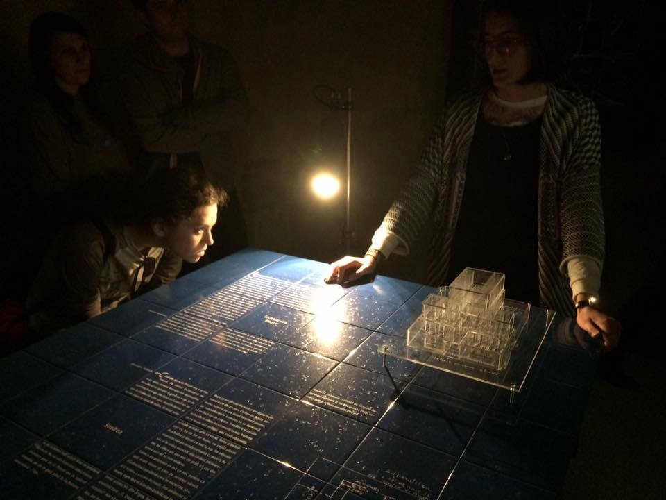 Pe o măsuță albastră și pătrățoasă, lumina cade uniform și dezvăluie o parte din mărturiile celor închiși aici. În mijlocul mesei, o machetă realizată de Gheorghe Pop, un fost deținut, amintește de cum arăta locul cîndva. Maria îmi atrage atenția că temnița are forma literei T și că la un moment dat, subsolul în care ne aflăm era inundat. Ca formă de izolare, cei închiși aici trebuiau fie să stea cu cartofi pe lîngă ei, de care să nu se atingă, fie erau obligați să stea în apă pînă la brîu și lăsați să reziste așa mai multe zile la rînd.