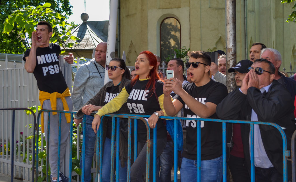 Discursurile liderilor partidului se sfîrșesc rapid, iar cele aproape 20 de mii de oameni dispar, în valuri, în mai puțin de un sfert de oră. Piața e amorțită, plină de gunoaie. O mînă de bătrîni, susținători ai Partidului Social Democrat, rămîn dansînd în fața scenei. Cînd văd că miile de protestatari mai au puțin și se apropie de piață, se-ndreaptă fugind speriați către una dintre ieșiri, printre ropote de huiduieli. Piața e rapid ocupată de protestatari. Unii dintre ei rup furioși pancartele PSD rămase în urmă, alții se îmbrățișează, scandează sau suflă cu patos în vuvuzele. Ai zice, pentru o clipă, că timpul s-a derulat și-ai ajuns din nou la un protest din luna februarie a anului 2017; doar că de data asta, în ciuda Unirii pe care piața o poartă în nume, simți că lumea n-a fost nicicînd mai dezbinată de-atît.