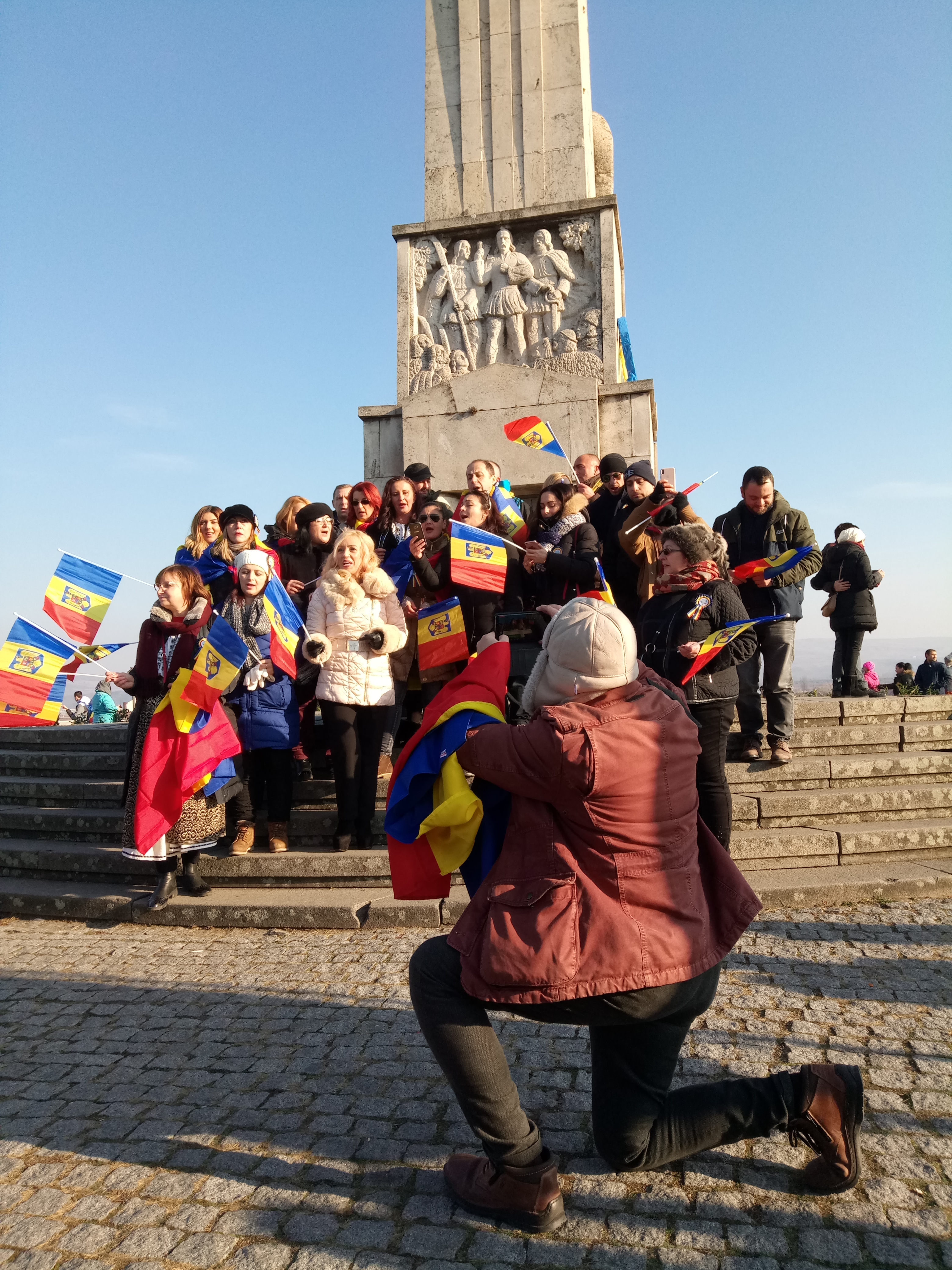 Pe lîngă oficialități din guvernul României, la invitația MRP s-au aflat în sală unii dintre laureați și, invitați privilegiați într-un tur de presă cu ocazia Centenarului între 28 noiembrie și 2 decembrie, 24 de jurnaliști români și membri activi din mediul asociativ al diasporei din țări precum Anglia, Belgia, Canada, Franța, Germania, Grecia, Irlanda, Israel, Italia, Spania. „Smulși” de bună voie și cu mare curtoazie de ziua României centenare din societățile occidentale unde trăiesc și unde românismul e la cote rarefiat normale, invitații au plonjat vertiginos într-o baie hiperconcentrată de patriotism în trei culori. Pe un traseu al unor autentice valori fondatoare de mai multe sute de ani precum Curtea de Argeș, Târgu Jiu, Lainici, Densuș, Alba Iulia, supradoza de patos patriotic a acționat legitim ca un narcotic de șoc, cu efect euforic. România e, nu-i așa, de ciocolată, iar stop cadrele pentru o reîndrăgostire pe loc de țara care n-a uitat să te cheme la ziua ei fără șir. Așadar, în carnetul de drum inițiatic pentru un român din lumea largă dedulcit la un periplu memorial și afectiv treci cu bucurie: siropul de busuioc de la mănăstirea Lainici, făcut de călugări; amurgul și spuza de zăpadă din jurul Coloanei infinite, la prima întîlnire cu scara spre cer, cum o numea Brâncuși; clopoțeii din streșinile Mănăstirii zidite de Meșterul Manole, care sunau cînd hoardele dușmane făceau să vibreze ținutul de pe Argeș în jos; Sfînta Duminică de pe stîlpul pe jumătate piatră tombală romană de la biserica din Densuș; vînzoleala autentică din Cetatea Albei, cu un fabulos happening al straielor istorice, purtate pentru centenar de familii venite de la Craiova sau din Vatra Dornei, de la Bălți sau din Timișoara; sutele de steaguri în lumina sticloasă ținute de mîini înmănușate sau roșii de ger.
