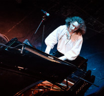 Muzica de pian se aude de după ușa de sticlă. Înăuntru e mai degrabă întuneric, lumina becului