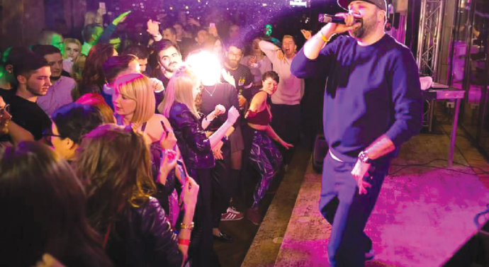 Show-ul și dansul au încetinit în momentul în care rapper-ul s-a așe­zat pe un scaun uitat pe scena im­pro­vizată a localului. „Mi-au pus ăștia și-un scaun aici, să nu cumva să obo­sesc”, reușește să spună printre cîteva hohote de rîs. Scanează sala și-și oprește privirea asupra fetelor din primul rînd, încercînd să le ghi­­cească vîrsta, însă după două în­cer­­cări eșuate se ridică brusc spunînd „toa­tă lumile, din spate-n față să sară pîn’ la norii ăștia”, în timp ce deja se aude ritmul piesei „Didaia” pentru care fanii au început să țipe din toți ră­runchii. Chiar dacă spațiul nu le permite, e prea tîrziu ca persoane­lor prezente să le mai pese pe cine cal­că. De la adolescenți îm­bră­cați în tricouri cu „casa moara fe­ti­li”, la domni îm­bră­cați în cămăși care de care mai înflorate, toți se calcă pe pi­cioare în încercarea de a se feri de tocurile doamnelor.