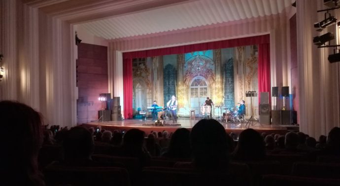 Îmbrăcat într-o cămașă albă, pe deasupra căreia a așezat o vestă neagră, Ștefan Hrușcă și-a făcut apariția zîmbind, sîmbătă seară, 10 martie, pe scena Casei de Cultură a Studenților din Iași, fredonînd „Ningea cu flori de iasomii și încă mai eram copii”. Publicul i-a urat bun venit cu bătăi ritmice din palme, care s-au rărit treptat pînă artistul a ajuns la primul refren al piesei, în sală răsunînd doar vocea sa puternică. Puțin reținut, Ștefan Hrușcă nu le-a vorbit spectatorilor timp de două melodii, ci a ales să le prezinte un „repertoriu de primăvară”, după cum chiar folkistul și-a intitulat playlistul pe care l-a prezentat ieșenilor. Acest lucru nu a întristat pe nimeni, ba chiar i-a făcut pe cei din sală să-și scoată telefoanele din genți și să-l filmeze pe folkist, pentru a fi siguri că vor rămîne măcar cu o amintire și după terminarea concertului.