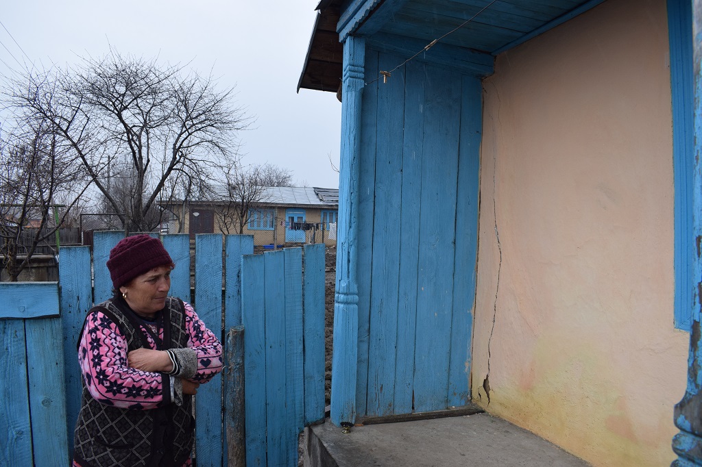 „Soțul meu, în fiecare noapte mă trezea din somn și-ncepea să strige : «Fă, fă, fă, cutremurul!». Îl li­niș­team și apoi încercam și eu să dorm. La un moment dat, începusem să mă învăț și cînd mergeam pe la un doctor la oraș și spuneam de unde sînt, deja știa că-s de acolo, de un­de-s cutre­mu­rele alea multe. Tă­ceam, mă-nfri­co­șam și înghițeam în sec”, spune tanti Dana, în timp ce-și încrucișează mîi­nile în poală și privește spre dea­lul „care curge con­tinuu”. Nu știe ce o să facă, iar da­că s-ar întîmpla ceva cu locuința ei, în niciun caz nu s-ar du­ce pe capul băiatului, la oraș. Crede că zona as­ta-i blestemată, căci, aici, la ea în sat, sînt cutremure și alu­ne­cări de te­ren, iar prin comunele ve­cine sînt inundații și oamenii ăștia împărțiți în două parcă fac parte din tabere de suferință diferite. „Eu zic că toa­te astea sînt de la sondele ca­re scot petrol de sub pămînt, alții spun că nu. Nu știm. În caz de ce­va, eu ies afară și strig în gura ma­re să mă audă toată lumea. Altfel, unde să mă duc, ce să fac?!”, spune femeia de peste 50 de ani, iar pe obraz încep să-i curgă lacrimile. În fața mamei sale și a bărbatului zice că nu poa­te să plîngă – trebuie să fie pu­ter­nică. Suspinele ei sînt întrerupte, din cînd în cînd, de stropii de plo­aie care se scurg de la stre­și­na ca­sei bă­trînești.