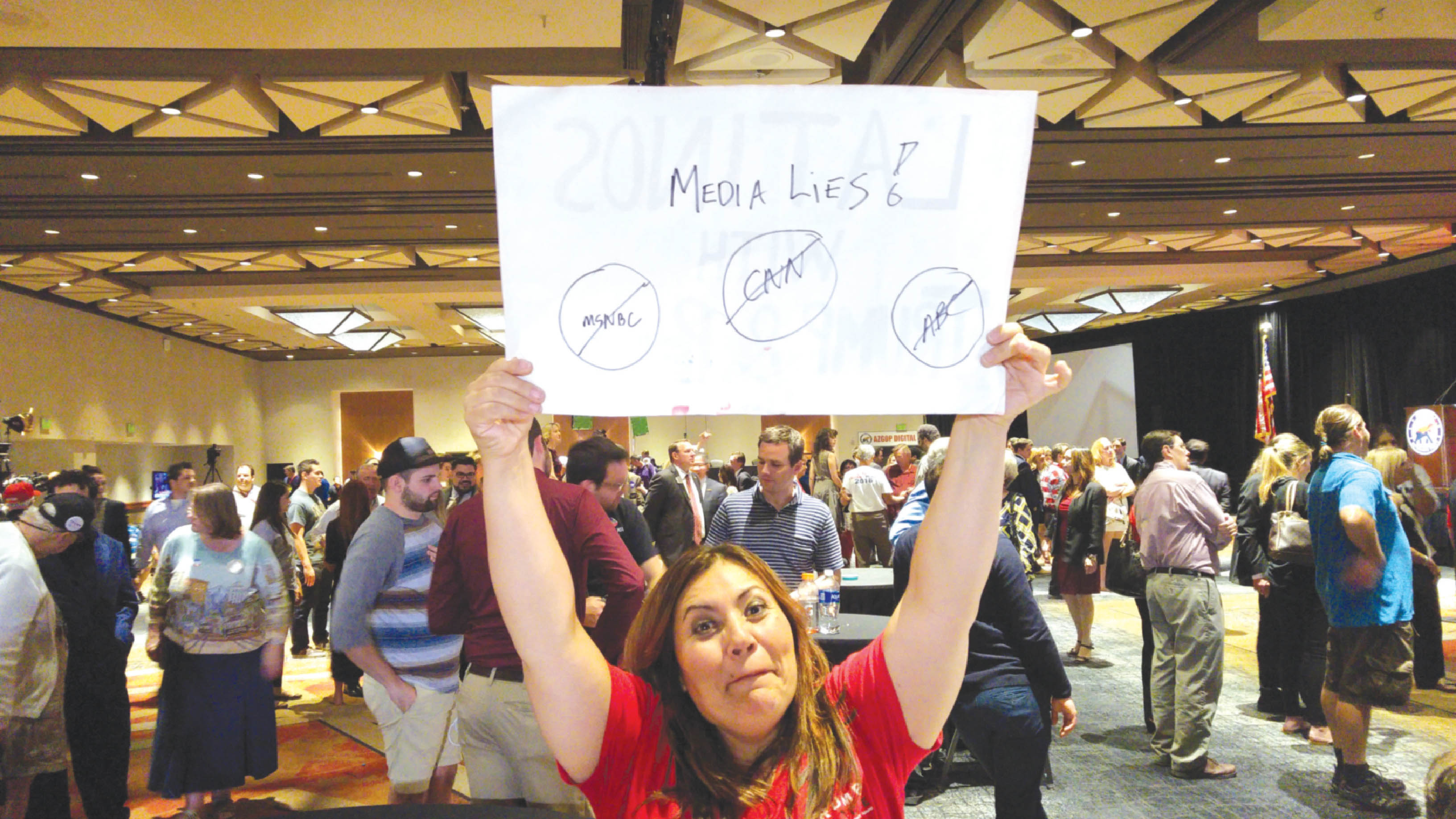 Nimeni nu vrea să o anunțe. E marți noapte, la sediul din Phoenix unde republicanii și susținătorii acestora urmăresc cum se înroșește harta Americii, stat după stat. Pe două ecrane imense e proiectat Fox News, dar aceștia îl țin pe Trump la aproape 260 de electori, fără cei 11 din Arizona pe care-i anunțaseră deja republicanii locali și care i-ar fi confirmat victoria. Dar nicio agenție media nu vrea să anunțe victoria lui Trump, deși fiecare în parte a acontat, în mare, statele în care acesta va cîștiga. În sală, alcoolul și euforia se amestecă într-un cocktail greu de înghițit. Reporterii locali par încremeniți, cu zîmbete șterse pe față, susținătorii republicanilor sînt în extaz și repetă șablonul strigărilor din toată țara – „Lock her up” și „Build the wall”. Pînă la ora 21.00 nici republicanilor nu le venea să creadă că nu li se desfășoară în fața ochilor un scenariu de film în care Clinton revine pe final și recuperează statele cheie. Apoi, speranța slabă a acestora se transformă în extaz.